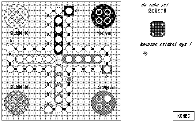 Všichni jistě znají ze svých dětských let stolní hru Člověče, nezlob se! Zajímavostí je, že hra pochází z Indie. Cílem hry je dovést figurky jedné barvy ze startovního pole do cílového domečku. Verzi pro Atari ST vytvořil Miroslav Lednický v roce 1992. Bohužel si za hráče nemůžete zvolit počítač, takže ke hře potřebujete 2 až 4 hráče. Hra běží jen v monochromatickém módu a díky tomu je občas problém rozlišit figurky spoluhráčů.