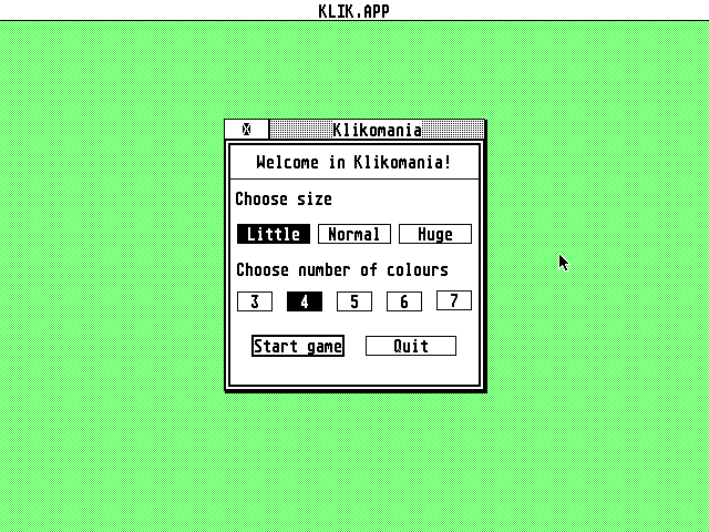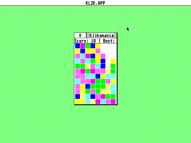 Klikomania je logická hra, ve které musíte odstranit všechny čtverce z herního okna. Odstranit můžete jen dva čtverce se stejnou barvou, které leží vedle sebe. Na začátku hry si můžete zvolit velikost herního okna a počet barev. Hru naprogramoval Vadim Kindl (Gildor). Pro běh hry je ideální rozlišení 640x400 bodů v 16 barvách. Zajímavostí je, že hra je mailware, takže po zahrání mailujte autorovi pozdravy.