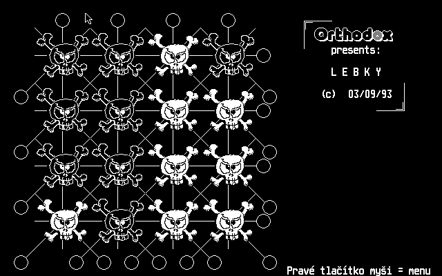 Další hra z dílny ORTHODoXu se jmenuje Lebky. Hra pochází z roku 1993 a jedná se o logickou hru. V této hře musíte klikáním přebarvit lebky na jednu barvu. Jedná se o relativně jednoduchou hru, kterou za chvilku dohrajete. Jak už je zvykem u ORTHODoXu, hra běží výhradně v monochromatickém režimu.
