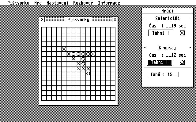 Snad každý někdy hrál piškvorky na čtverečkovaném papíře. Dva hráči se střídají v kreslení křížku a kolečka. Vyhrává hráč, který nakreslí nepřerušenou řadu pěti značek. Počítačovou variantu piškvorků vytvořila skupina Atack v roce 1994. Hru mohou hrát dva hráči na jednom Atari ST nebo na dvou strojích Atari spojených sériovým kabelem nebo modemem. Hra běží v monochromatickém rozlišení a pro korektní zobrazení češtiny vyžaduje počeštěný TOS.