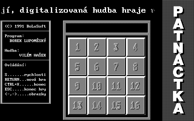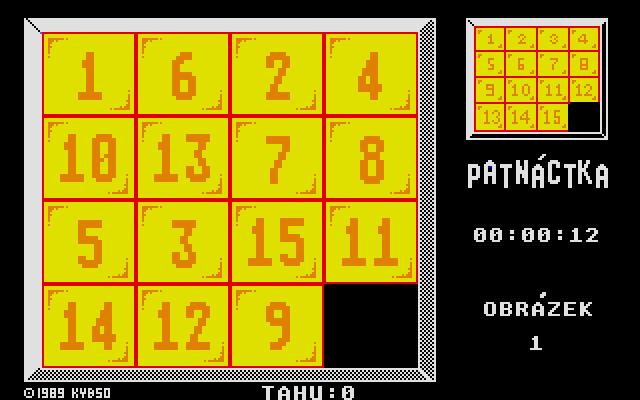Opět tu máme klasický hlavolam patnáctka, kde musíme správně poskládat 15 dílků. U této hry si také můžete zvolit, jestli budete skládat čísla nebo nějaký obrázek. Na výběr máme ze 7 obrázků. Autoři se zjevně inspirovali u předchozí verze hry, protože mezi obrázky nechybí Mona Lisa a faraon. Hra tentokrát běží v monochromatickém rozlišení Atari. Hru naprogramoval Borek Lupoměský, hudbu napsal Vilém Hašek a vydali ji v roce 1991 pod uskupením BoLuSoft.