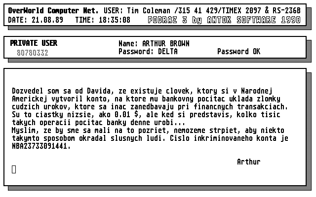 Určitě všichni znáte hru Podraz 3 od Františka Fuky ze ZX Spectra. Jedná se o textovou hru. V roli nezaměstnaného programátora Tima Colemana musíte oloupit lupiče. Máte k dispozici jen počítač s modemem. Děj hry spočívá v tom, že se přes modem připojujete k jiným počítačům a postupně získáváte informace, pomocí kterých se dostáváte na stopu lupičů. Vzniklo mnoho pokračování této hry od různých autorů. Jedním z nich je Anton Tokár. Pro Atari ST předělal původní Podraz 3 od Fuky a přidal ještě další 3 díly, které původně vytvořil pro ZX Spectrum. Kolekce her Podraz běží v monochromatickém rozlišení a vyšla v roce 1990 pod hlavičkou Antok Software.